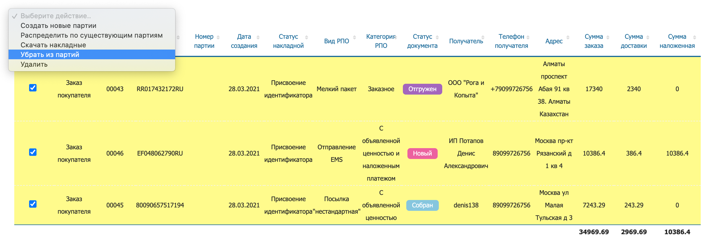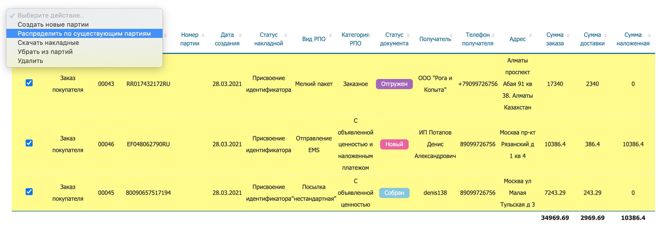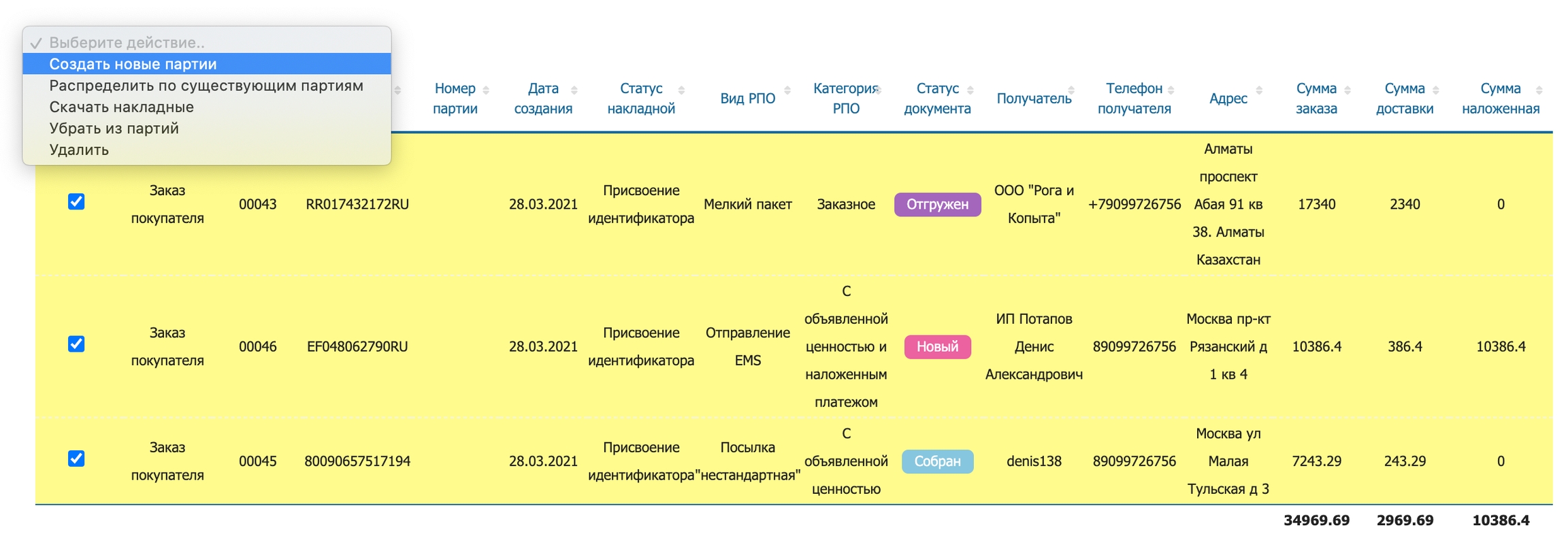 Если подходящих партий нет, приложение создаст для этих отправлений новые партии по принципе описанному выше.