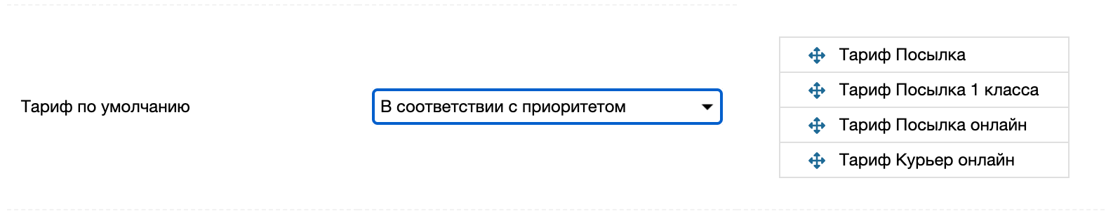 В соответствии с приоритетом. Пользователю предлагается расставить включенные тарифы в порядке приоритета (сверху - самый приоритетный). Приложение будет использовать список приоритета и оформит накладную по первому (считая сверху) доступному тарифу .
