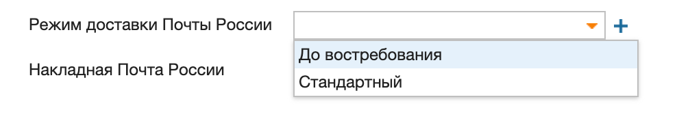 Выбирать из справочника. Нужно установить справочники в документ и указать название справочника "Режим доставки Почты России".
