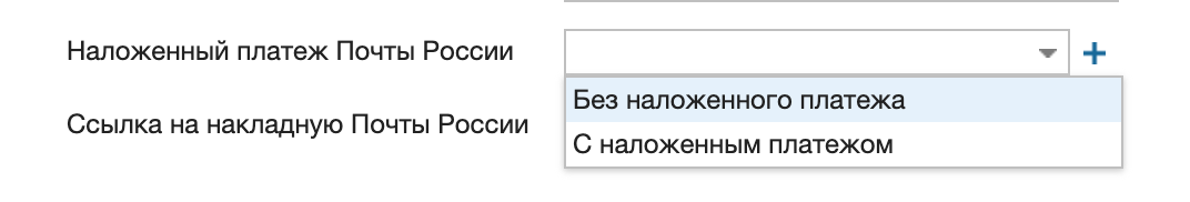 Выбирать из справочника. Нужно установить справочники в документ и указать название справочника "Наложенный платеж Почта России".