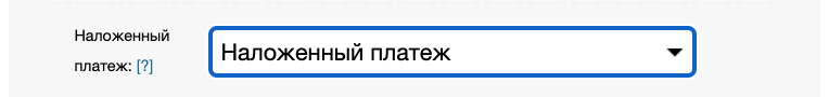 Если в регионе недоступен прием наложенного платежа, опция автоматически устанавливается в значение "Без наложенного платежа", а выбор "Наложенного платежа" становится недоступен пользователю.